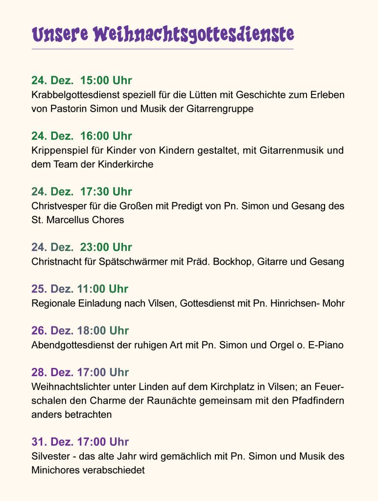 Unsere Weihnachtsgottesdienste
